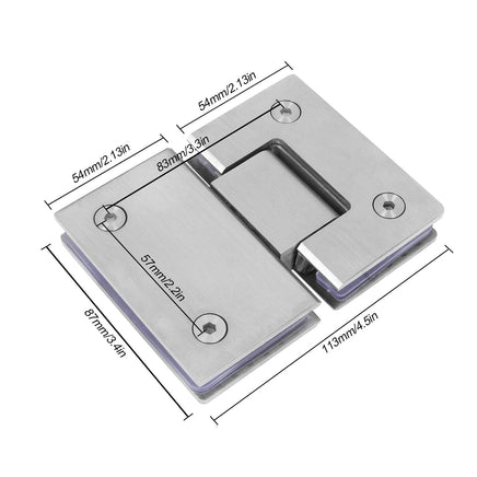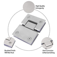 Premium Material: The door hinges are made of high-quality 304 stainless steel with satin nickel finishing. With 4mm thickness, the frameless glass door hinges can be sturdy and durable for years, ensuring long-time use without any deformation, scratch or abrasion.