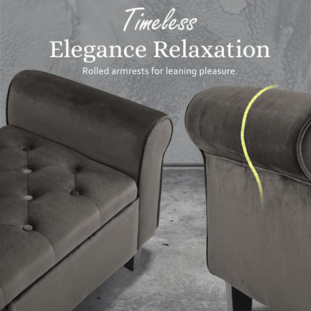 La Bella Storage Ottoman Bench Seat 132cm Chest Arm Couch Stool Velvet - Grey