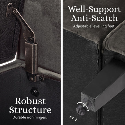 Lift the lid, and voila! You've got a roomy storage space inside - great for keeping blankets and pillows neat and tidy. Putting it together is a breeze, and the wooden legs bring a touch of warmth to the design.