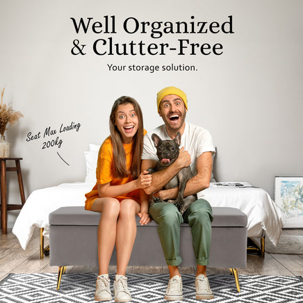 With sleek metal legs for stability, lift the lid to find a roomy interior - ideal for storing blankets and pillows discreetly. This Ottoman Storage is more than practical; it's versatile, serving as a comfy footrest or extra seating for guests.