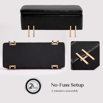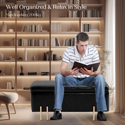 La Bella Storage Ottoman Bench Seat 97cm Chest Couch Stool PU Leather - Black