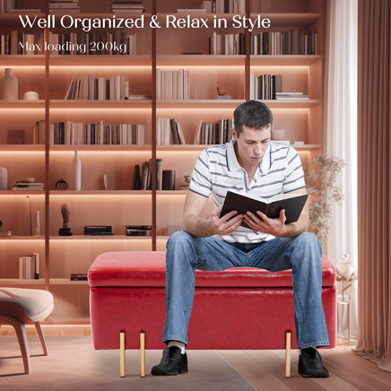 La Bella Storage Ottoman Bench Seat 97cm Chest Couch Stool PU Leather - Red