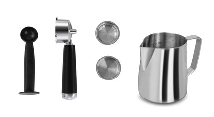 - Accessories Included: Single cup filter, double cup filter, scoop/tamper, filter holder/portafilter, milk jug