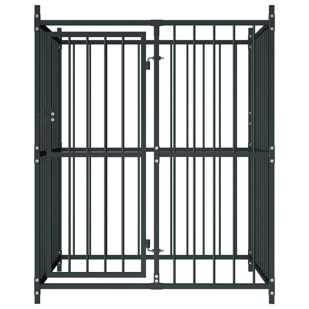 Our outdoor heavy-duty dog kennel is versatile. Your dogs can play, exercise, get trained, or simply stay safe. It is a perfect play paradise for your furry friends! This large dog kennel provides ample exercise space while the steel bar walls help prevent mischief and unexpected accidents while enabling ventilation. Thanks to the sturdy and heavy-duty steel construction, this dog kennel is durable and built to last. The hinged door has a lockable latch system which ensures extra security and safety for your dogs. Our dog kennel is easy to assemble.
