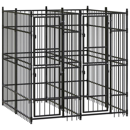 This versatile dog kennel features multiple uses: playing, exercising, training, or simply keeping your dog safe. It will be the perfect play paradise for your furry friends! This dog kennel provides ample exercise space. The walls of steel bars help prevent mischief and unexpected accidents while enabling ventilation. Thanks to the sturdy powder-coated steel construction, this dog kennel is durable and built to last. The hinged door with a lockable latch system ensures extra security and safety for your dogs.