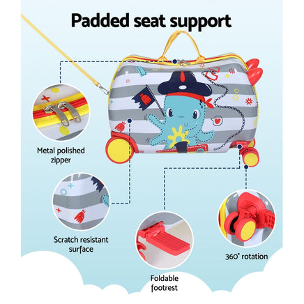 Wanderlite 17" Kids Ride On Luggage Children Suitcase Trolley Travel Octopus SALE