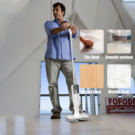 Fully automatic 5-in-1 floor mop with dry, wet, waxing, polishing, and sterilising functions.