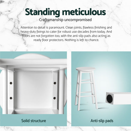 Made from quality beech wood, the Bar Stool is designed with thick seats and legs for a very solid look and feel. And it would not even look out of place in a garage or man-cave for mates to have a good time tossing back a few stubbies or a jam session with the band.