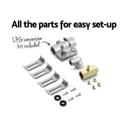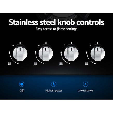 Whether it is for your existing or new home, our Devanti 60cm Gas Cooktop is just the right thing you need for easy, no-fuss cooking. Loaded with an extensive list of chef-friendly features such as an easy ignition system, easy-to-use galvanized knob controls with safety lock and a flame failure safety device, the cooktop is also incredibly sleek with its black tempered glass surface. It features four burners including two semi-rapid burners, one wok burner and one auxiliary burner, all with various power levels to choose from to prepare that perfect dish. The solid cast iron grates hold up your pots and pans perfectly steady and are longlasting and heat-resistant as well. And a pan support is included so that you no longer need to carefully balance those tiny pans or coffee pots onto the grates to have them tipping over and messing up your cooktop. The cooktop is factory set for natural gas but is compatible with LPG once the included LPG conversion kit is installed. Powerful and yet integrally safe, the cooktop promises many moments of hassle-free delicious cooking with the right blend of sophistication and class for your kitchen.