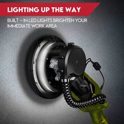 Its 9-inch head can 360° rotate in different directions and has a removable bottom for grinding to the edge or perpendicular wall. The floating head allows for a swing up and down from side to side which designed for automatic adjustment for uneven walls, fluctuation range is 1-10mm.