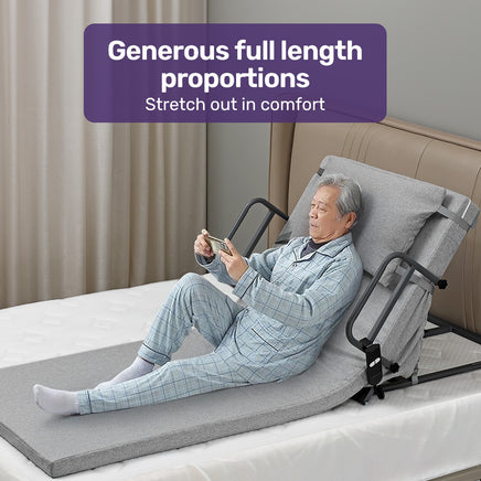 The backrest is outfitted with plush, comfortable cushioning covered in soft, machine-washable fabric, offering both comfort and convenience. You also have the option to attach side barriers to maintain safety without compromising usability. These have fabric covers with a handy pocket that is perfect for storing personal items, like a phone or the remote control. The Equipmed Electric Adjustable Backrest seamlessly enhances daily life with functionality and ease.