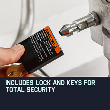 The Striker has a class-leading vehicle load of 3500kg, and can also run off a 24Ah battery (not included) - a standard car battery will do the trick!'. It comes complete with everything you need - including a lock and keys.