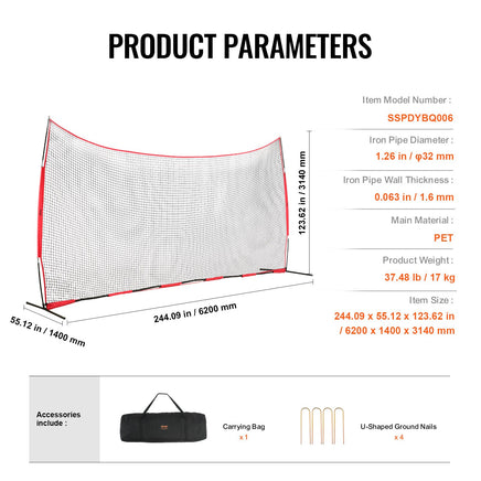 20x10 feet compact barricade backstop net, usable in backyards, lawns, and sports fields. No need to worry about the safety hazards of errant balls, protecting houses and window glass from damage. Enhance your sports time more wonderfully.