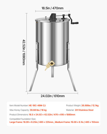 Made from food-grade stainless steel, this bee honey extractor is secure for contact with honey. The seamless barrel design enhances durability and prevents honey leakage.