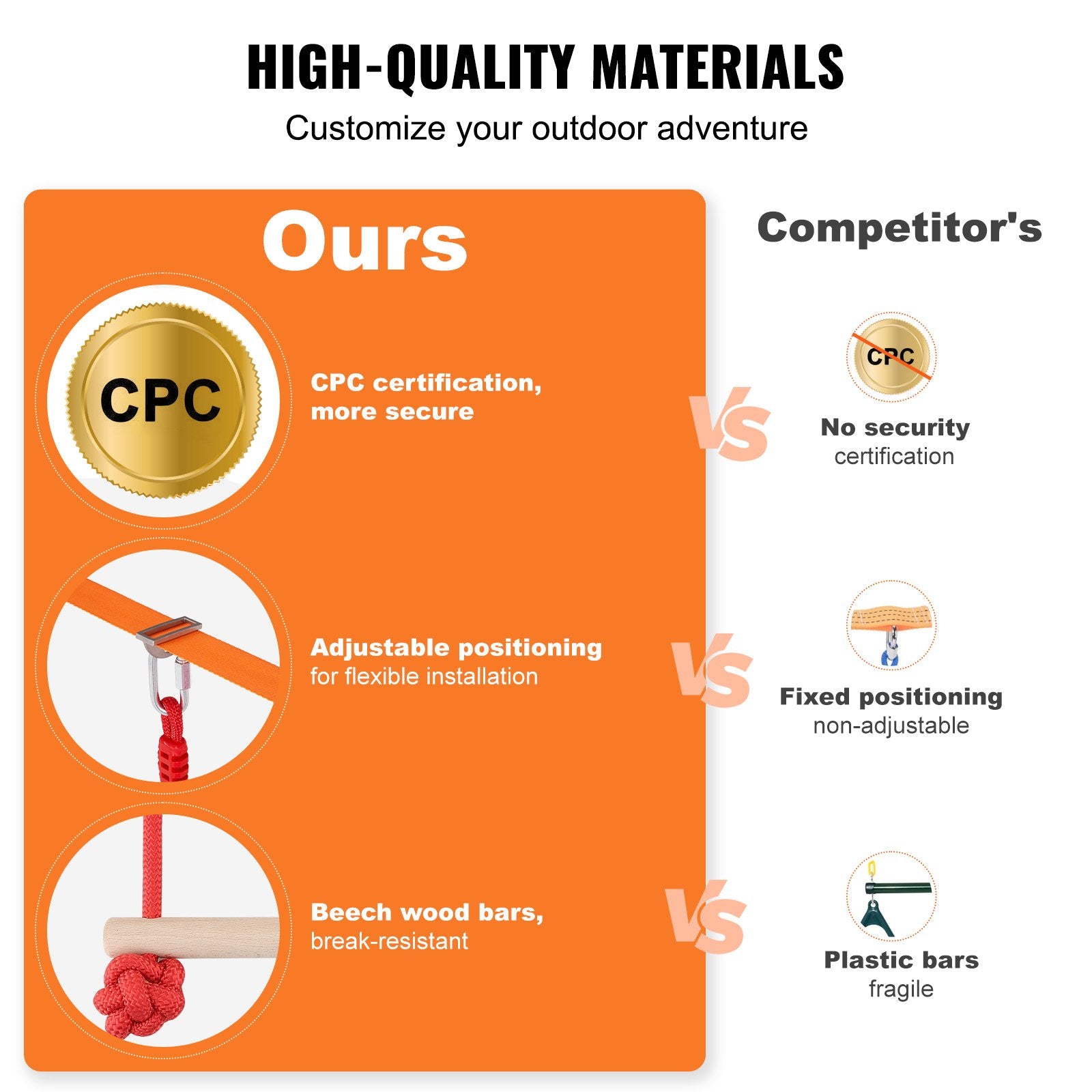 The outdoor playset equipment can be assembled in just 5 minutes. There's no need for a wide flat area in your yard; just fix it between two trees or poles 20 to 40 feet apart to start customizing your obstacle challenge game! It's an ideal alternative to traditional playgrounds, offering a convenient and flexible backyard challenge game for children of various ages and skill levels.