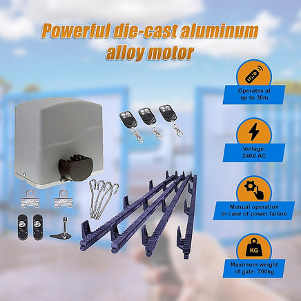 With a hefty output power of 300W, this diecast aluminum alloy motor can power a gate weighing up to 700kg. Quality constructions includes an alloy baseplate and a 4m steel-reinforced nylon gear rack. This rack not only ensures silent operation, but it also ensures a long life for your opener.