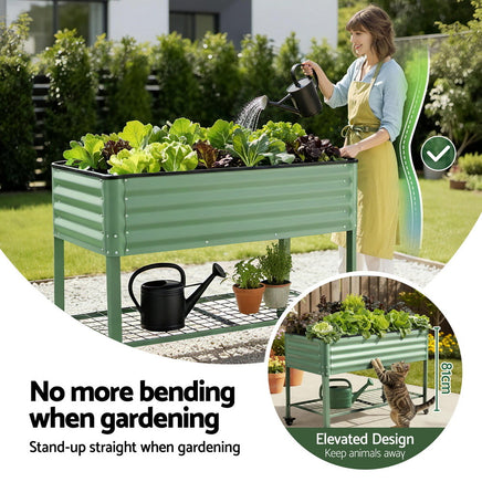 Green Fingers Elevated Raised Garden Bed Kit Mobile w/ Locking Wheels & Storage Shelf 100KG Max Load 115x60x81cm | Galvanized Steel, Portable Green Organizer for Seniors, Patio, Balcony, Vegetables SALE