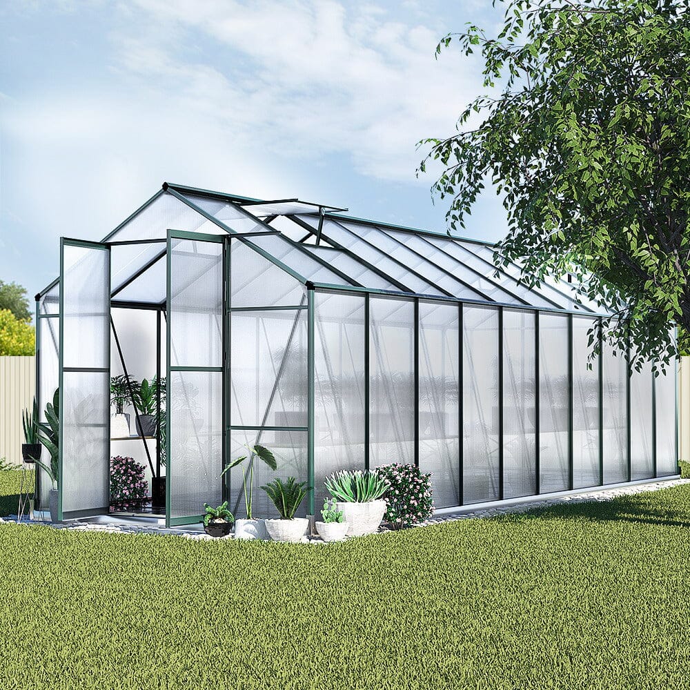 Green Fingers Greenhouse 6.3x2.44x2.1M Aluminium Polycarbonate Green House Garden Shed