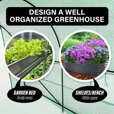 This Home Ready Large Walk-In Steel Frame Arc Roof Greenhouse is a great asset for your project on growing plants, vegetables, or propagating all year round! This strong and convenient green house will allow you to carry on your project throughout the year. It is ideal for medium to large scale growing projects. It is very easy to assemble and most importantly, no tools are required! Your plants will be just in the right environment in order to produce the best results!
