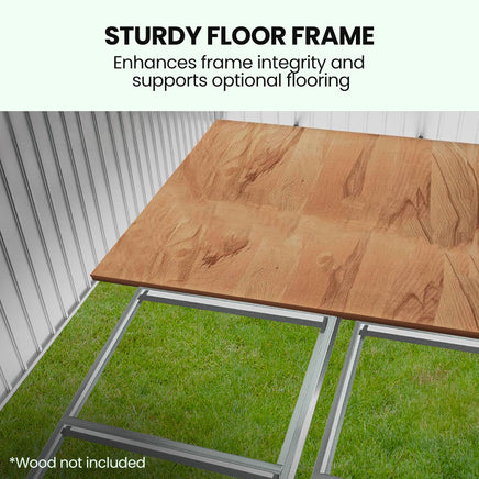 Front and rear air vents ensure the interior is well-ventilated, helping to reduce mould and any build-up of fumes. Smooth sliding doors offer wide, easy access, comfortably accommodating large items.The bonus floor frame (RRP $179.90) adds structural strength and can also support optional flooring on top of it.