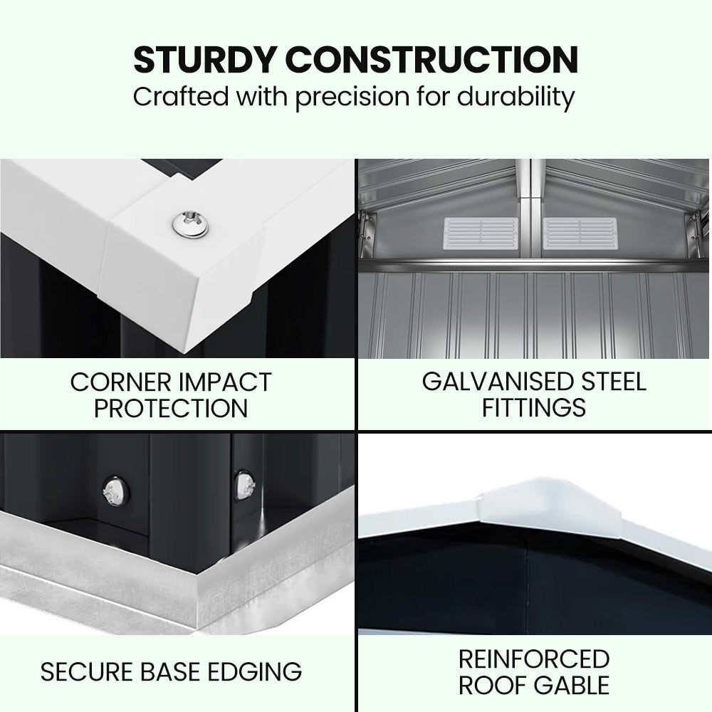 Optimise your outdoor storage with the PlantCraft 2.58 x 3.14 x 2.02m Galvanised Garden Shed, perfectly suited for storing gardening tools, equipment, and other essentials. Made from high-quality galvanised steel, this durable shed offers excellent corrosion resistance and withstands various weather conditions effortlessly.