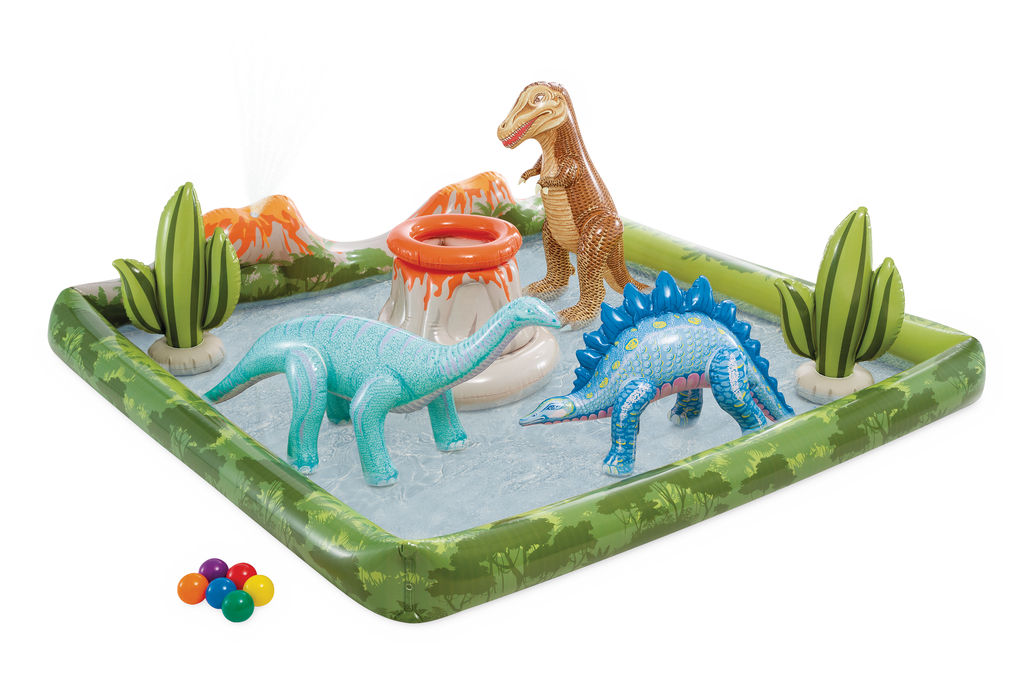 Ignite your child's imagination with a prehistoric scene in your backyard! A built-in sprayer keeps things cool with water from your garden hose.