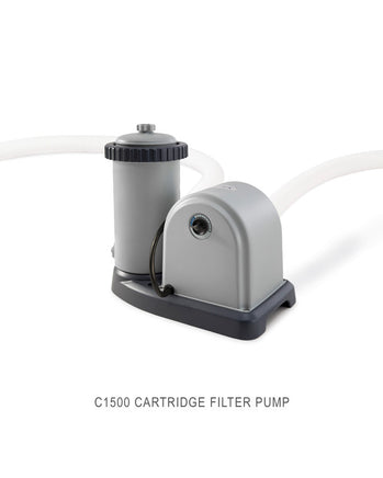 - Includes a 220-2400V Krystal Clear cartridge filter pump, pump flow rate: 1,500 Gph