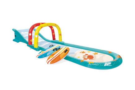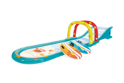 Surf's up��in your own backyard! Your kids can pretend they're barrelin' down a tasty wave on inflatable surf riders as built-in sprayers keep them cool.