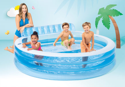 Treat your family to a relaxing pool day as you transform your backyard into a cool summer retreat with the Intex Inflatable Family Lounge Pool Swim Center 57190NP.