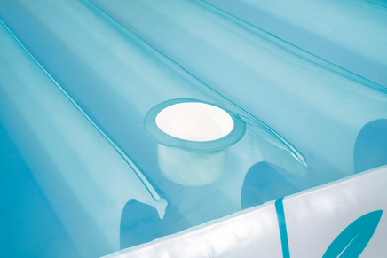 Share the stylish serenity of this floating oasis. Stay cool with the canopy or easily remove it for optimal fun in the sun. As with any proper lounge, there's space to keep your drink handy.