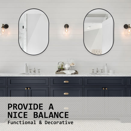 2 Set Wall Mirror Oval Aluminum Frame Bathroom 50x75cm BLACK