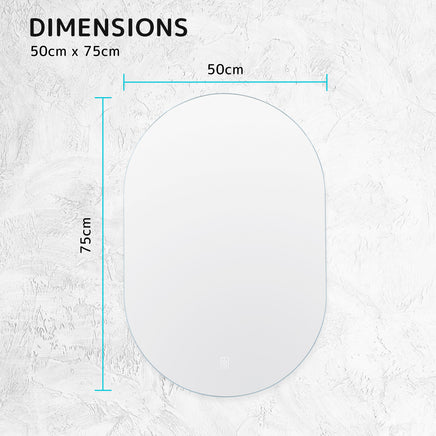 2 Set La Bella LED Wall Mirror Oval Touch Anti-Fog Makeup Decor Bathroom Vanity 50x75cm