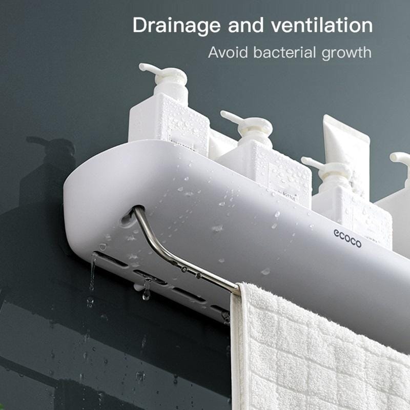 1. With towel rail design, it can be used in bathroom or kitchen. Can be put in shampoo, shower gel, soap, cosmetics, etc.