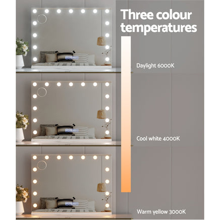 Get the star treatment with our gorgeous Embellir Make-up Mirror. Framed with 15 LED bulbs, this mirror really lights up your visage through your daily makeup regimen. The aluminium frame is sturdy, lightweight, and adds a touch of glamour to the entire mirror. The frame sits on an equally smooth powder-coated MDF base for stability and durability. Best of all, the built in Bluetooth speaker allows you to listen to your favourite audiobooks, music and podcasts as you go. Even more wonderful is that the LED light can be easily adjusted for brightness and colour temperature using our intelligent touch controls. Turn your bedroom or bathroom into a celebrity set overnight with our Embiller Make-up Mirror, and enjoy beauty in all its illuminated brilliance.