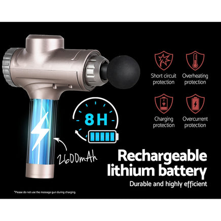 Massage Gun 30 Speed 6 Heads Vibration Muscle Massager Chargeable Gold