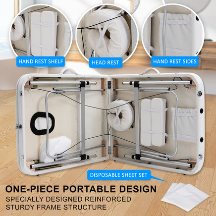 Forever Beauty Portable Beauty Massage Table Bed 3 Fold 70cm Aluminium Therapy Waxing - White