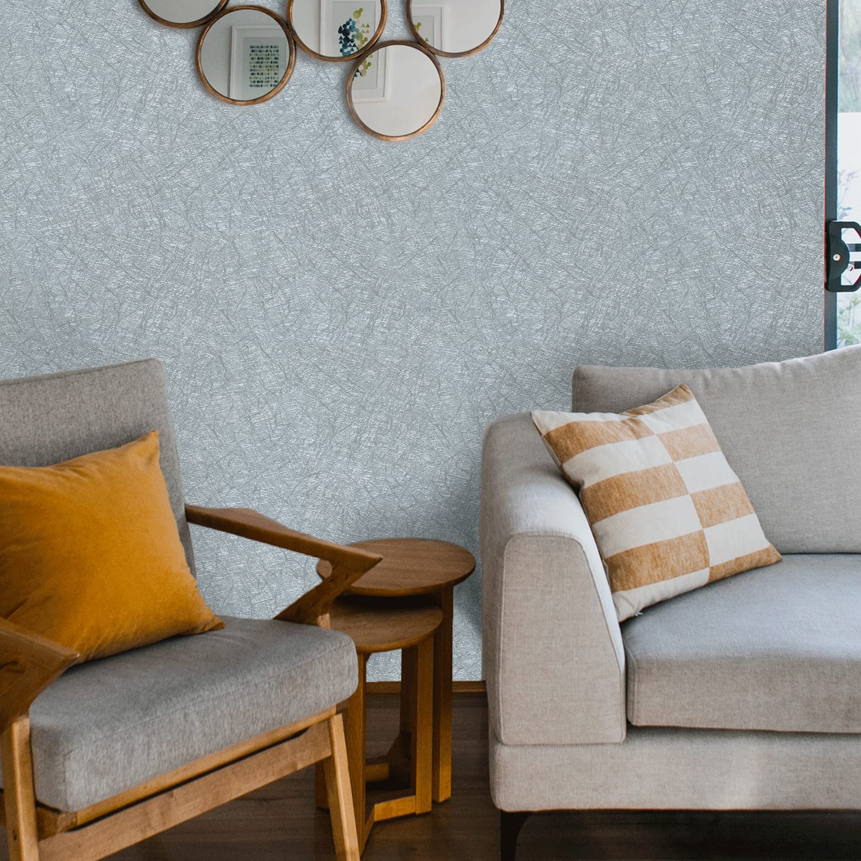 61cm x 10m Green Wallpaper Decor Faux Grasscloth Paper Wall Paper Self Adhesive Removable Silver
