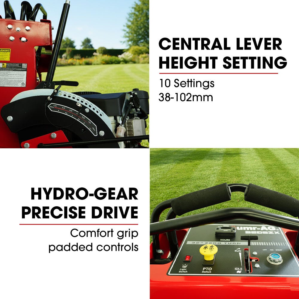 - Hydrostatic drive and turf tyres for precise 360-degree turn control