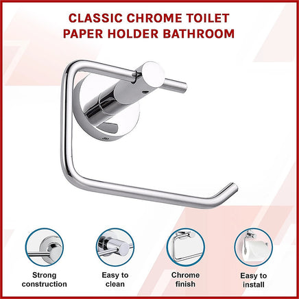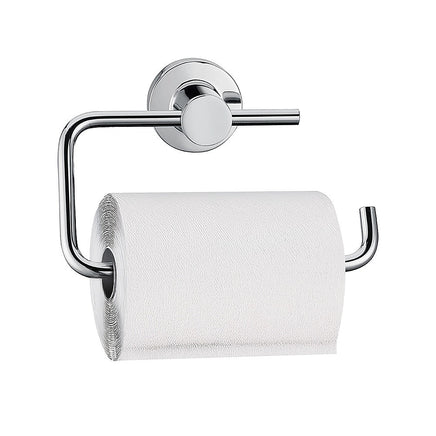 This toilet paper holder is finished with a brilliant chrome. A simple design keeps the toilet paper on the holder without the need for a spring roller.