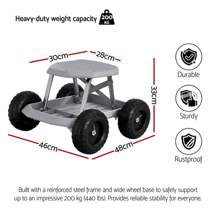 Gardeon Garden Cart Seat with Wheels, Rolling Work Stool with Tool Storage Tray, 440lbs (200kg) Heavy Duty Capacity Garden Stool for Outdoor Yard Work, Car Detailing, and Garage Maintenance, Grey/Black SALE