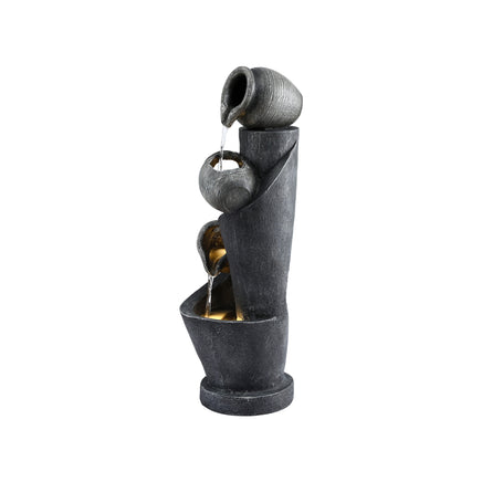Gardeon Solar Fountain Water Feature Cascading Fountain 3-Tier Pot LED Lights 80CM Grey