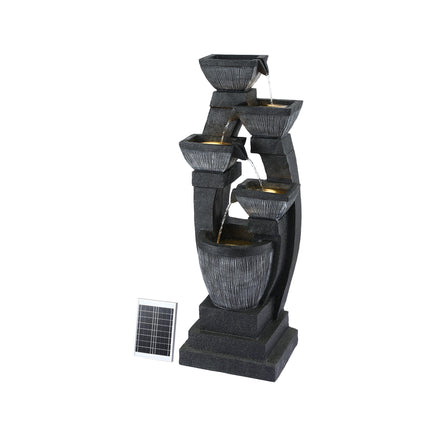 Enhance your garden with this Classic 5-Tier Cascading Solar Fountain, an eco-friendly solar-powered solution designed for both outdoor and indoor use. This complete kit features an energy-efficient solar panel, a lithium battery, and a powerful, durable water pump for lasting performance. Create a stunning atmosphere with underwater LED lighting and adjustable water flow to suit your mood. Designed for easy installation, this fountain is the perfect energy-efficient addition to any home.