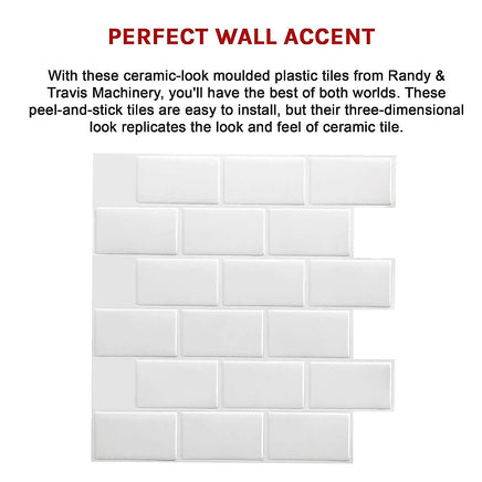 Want the look of expensive subway tile but don't want the hassle of installing it? With these ceramic-look moulded plastic tiles from Randy Travis Machinery, you'll have the best of both worlds. These peel-and-stick tiles are easy to install, but their three-dimensional look replicates the look and feel of ceramic tile. They're perfect for an accent wall, backsplashes for kitchens or bathroom sinks, on your kitchen island or even for your caravan.