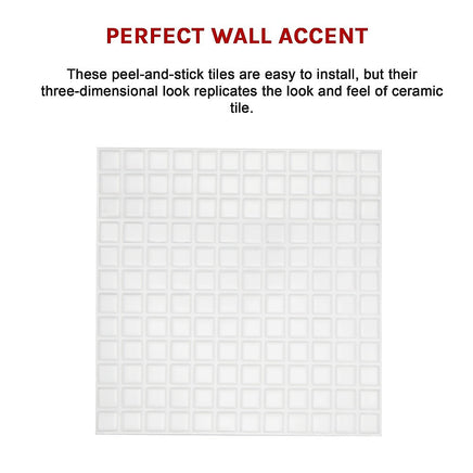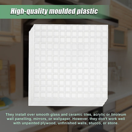 Want the look of clean, ceramic tiles but don't want the hassle of installing it? With these ceramic-look moulded plastic tiles from Randy & Travis Machinery, you'll have the best of both worlds. These peel-and-stick tiles are easy to install, but their three-dimensional look replicates the look and feel of ceramic tile. They're perfect for an accent wall, backsplashes for kitchens or bathroom sinks, on your kitchen island – or even for your caravan.