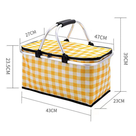 Collapsible Outdoor Camping Portable Insulated Picnic Basket Camping Picnic Ice Pack(Green Grid) SALE