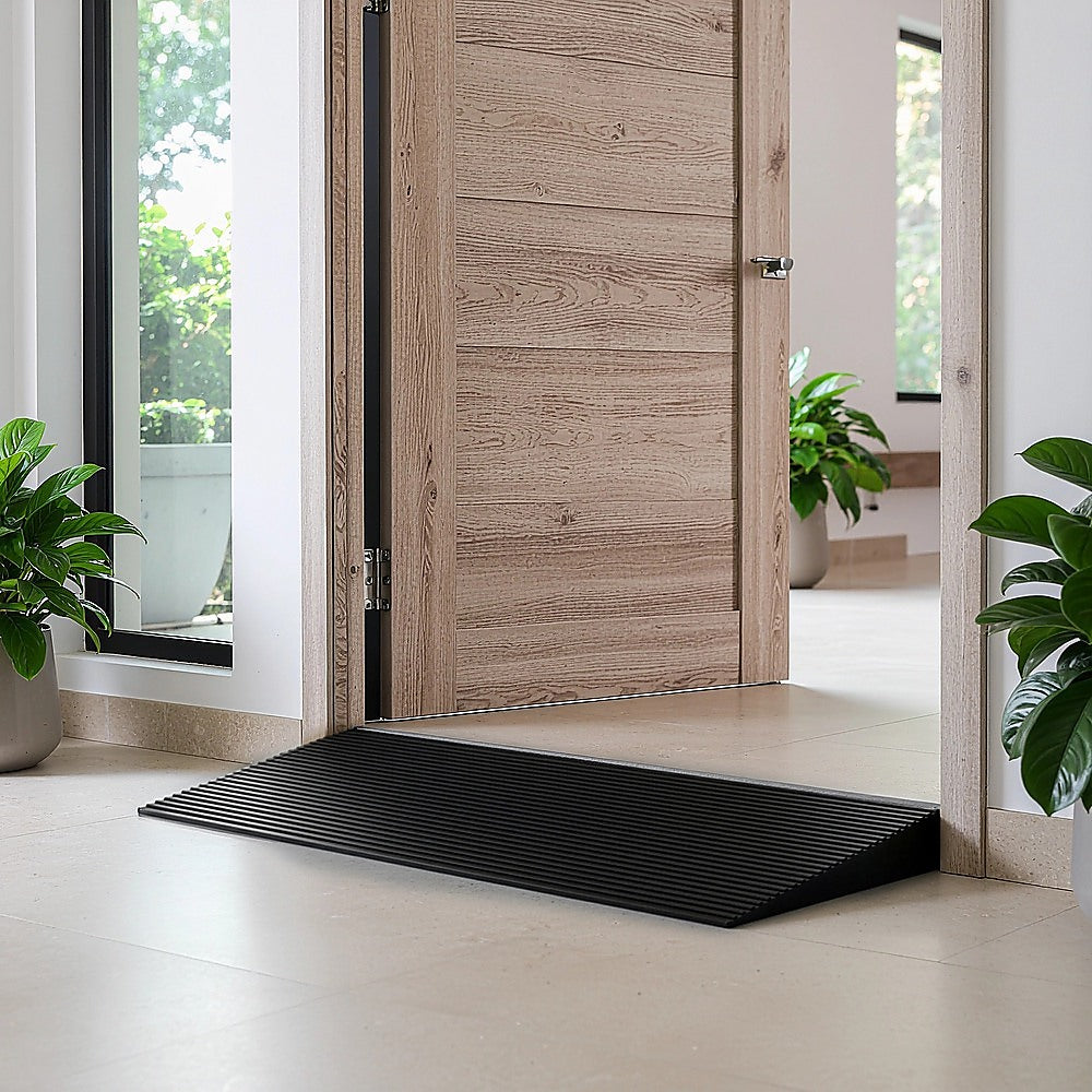 Ensuring a secure fit to the ground, the solid threshold ramp comes with double-sided adhesive for firm fixation on floors or smooth tiles. It resists shifting when placed in garages, doorways, roadsides, supermarkets, and other locations, providing stability and safety.