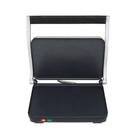 The non-stick plates allow healthier cooking with minimal oil and are easy to clean — just wipe with a damp cloth. A large grill plate fits up to two sandwiches at once, ideal for families or roommates. Safety is ensured with a cool-touch handle and non-slip feet, while the stainless steel housing adds durability and a modern look.