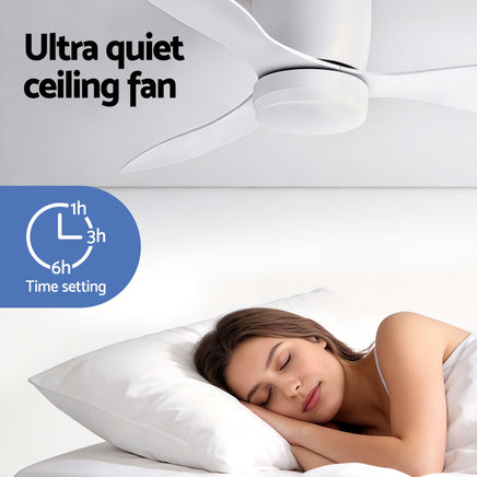 Experience ultimate comfort with this 52" DC motor ceiling fan, perfect for indoor and undercover outdoor areas. It features 6 adjustable speeds, 3-colour LED lighting, and a 6-hour timer, all controlled via remote. The energy-efficient DC motor ensures whisper-quiet operation, while reverse cycle mode allows for year-round use. Extension rod included. Note: Must be hard-wired and installed by a licensed electrician.