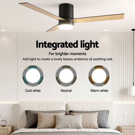 Enhance your home with this premium DC motor ceiling fan, engineered for quiet operation and energy efficiency. Control your comfort with 6 speeds, a 6-hour timer, and a reverse cycle motor for year-round use—all via the intuitive remote control. This stylish fan features double-sided color blades, a 3-color LED light, and an extension rod for easy installation. Modern, versatile, and high-performing, it's the perfect addition to any living space.