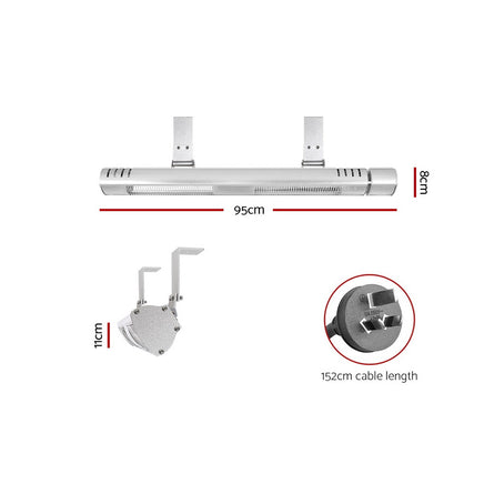 Just as the sun heats the Earth, a Devanti Halogen Heater will heat your home this winter, providing soothing sun-like warmth with its aluminium reflective heating technology. As infrared heating heats objects and not the air around them, this eco-friendly heater is more energy-efficient and cost-effective than other heaters. It features an unobtrusive design that will suit anywhere and adjustable swivel brackets to find the perfect heating position. Get warm from anywhere using the included remote control. The heater doesn’t emit any odours, fumes or carbon dioxide, and up to 95% of the energy generated is converted into useful heat for your home. It has an IP65 rating that makes it perfect for outdoor and indoor use, and the halogen heater can be wall or ceiling mounted to suit your space requirements. With no moving parts, the heater also works silently and is virtually maintenance-free. Stay warm and cosy this winter with a Devanti Halogen Heater.